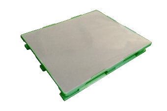 Этот поддон с размерами 1200 мм на 1000 мм относится к категории "Сплошные пластиковые поддоны". Еще одной его особенностью является наличие полозьев для упрощения транспортировки. Усиленная металлическим профилем конструкция позволяет отнести его к категории усиленных.